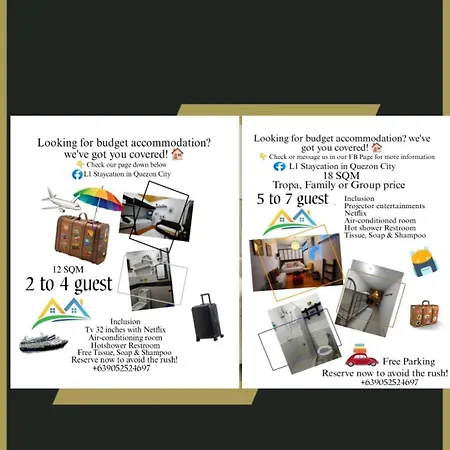 Reservar L1 Staycation In Quezon City 1Br Or 2Br Manila
